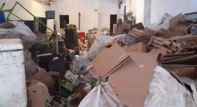 A vistoria, realizada em 26 de setembro, identificou descarte inadequado de resíduos, falta de ventilação, problemas na higiene do local, além da inacessibilidade aos dois extintores presentes devido ao acúmulo de entulhos e materiais recicláveis próximos aos itens. “Representando ameaça à saúde de quem trabalha na instituição”, pontou o MP.