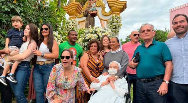 Irmã fundadora do Hospital São Vicente de Paulo acompanha procissão de Santo Antônio