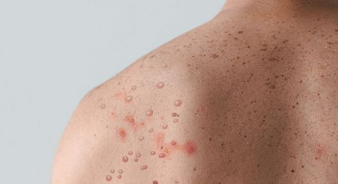 Os principais sintomas observados nos pacientes com diagnóstico para a doença são erupção cutânea, febre, cefaleia, fraqueza e dor muscular.