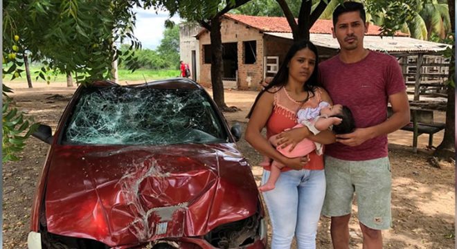 Após sofrer uma acidente no último sábado (03), o casal Valter Júnior e Ana Clécia tiveram perda total do carro. O veículo era instrumento de trabalho, utilizado para fazer entregas de mercadorias e pequenos bicos para sustentar a família.
