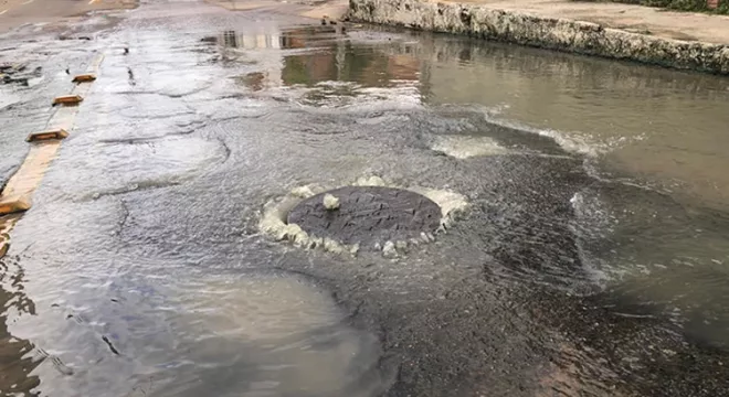 Na ocasião, é possível observar a rua alagada. De acordo com a moradora Ingrid, que mora em uma casa em frente ao bueiro aberto, a situação persiste há mais de quatro meses. “Cada vez que chove a situação se renova“, afirmou.
