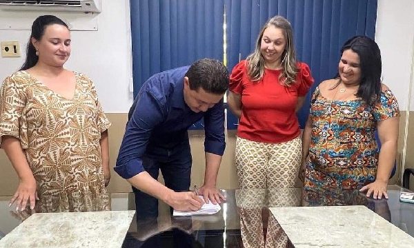 A representante da empresa, Fernanda Freitas, esteve na sede da Secretaria de Saúde para assinar o contrato de prestação de serviço ao lado do prefeito Glêdson Bezerra e da secretária de Saúde, Francimones Rolim.