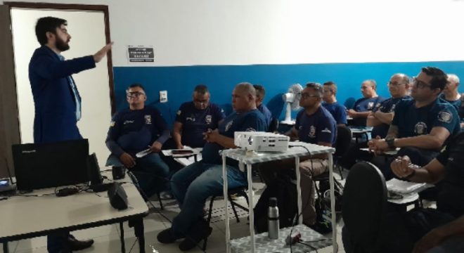 Na última quinta-feira (13), uma aula sobre lições básicas de Direito Constitucional foi ministrada para guardas municipais de Juazeiro do Norte, que realizam curso de formação iniciado há mais de 1 mês. A ação foi realizada pela Procuradoria Geral do Município.