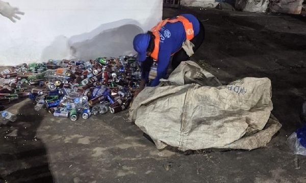 No total, foram recolhidos 1.350 quilos de resíduos, entre garrafas PET, plástico fino e latinhas de alumínio.