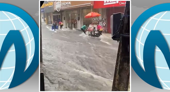O supermercado Super Lagoa, localizado na rua da Conceição, aparece em um dos vídeos com goteiras no interior do estabelecimento.