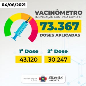 De acordo com dados do Vacinômetro da Imunização contra a Covid-19 da Secretaria da Saúde de Juazeiro do Norte (Sesau), divulgados na última sexta-feira (4), 30.247 pessoas já haviam recebido a segunda dose de alguma das vacinas contra o novo coronavírus até a manhã do mesmo dia na cidade.