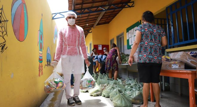 A Prefeitura de Juazeiro do Norte iniciou a entrega dos kits de alimentação na última quinta-feira (16). Em dois dias, 2.086 famílias de estudantes matriculados em 19 escolas da rede municipal de Ensino já receberam o benefício. Segundo a Prefeitura, as distribuições continuarão na próxima semana.
