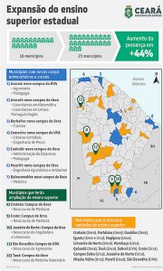 Barbalha também será beneficiada com a chegada dos cursos de Turismo e Gastronomia, pela Urca. Esta nova fase de expansão terá abertura de novos campi, novos cursos e concurso público. Assim sendo, salta de 16 para 23 o número de municípios com ensino superior estadual disponível. Um incremento de 44%.