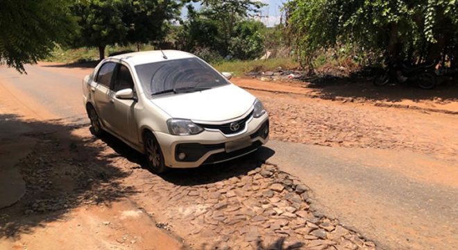 Nas imagens é possível ver que veículos de pequeno ou grande porte tem dificuldades para trafegar, devido aos buracos.