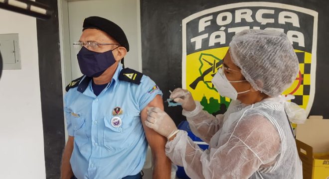 Juazeiro do Norte já iniciou a vacinação dos profissionais das forças de segurança (Guto Vital/Agência Miséria)