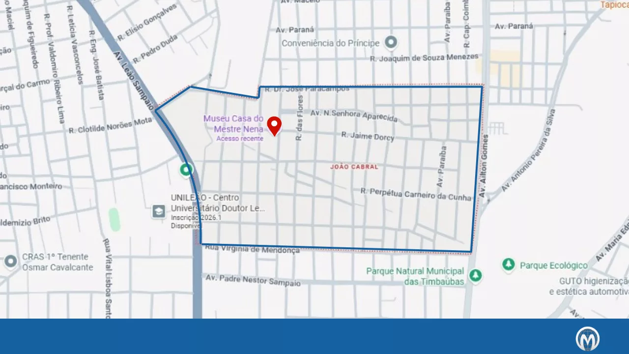 Delimitação do bairro João Cabral. Foto: Reprodução / Google Maps.