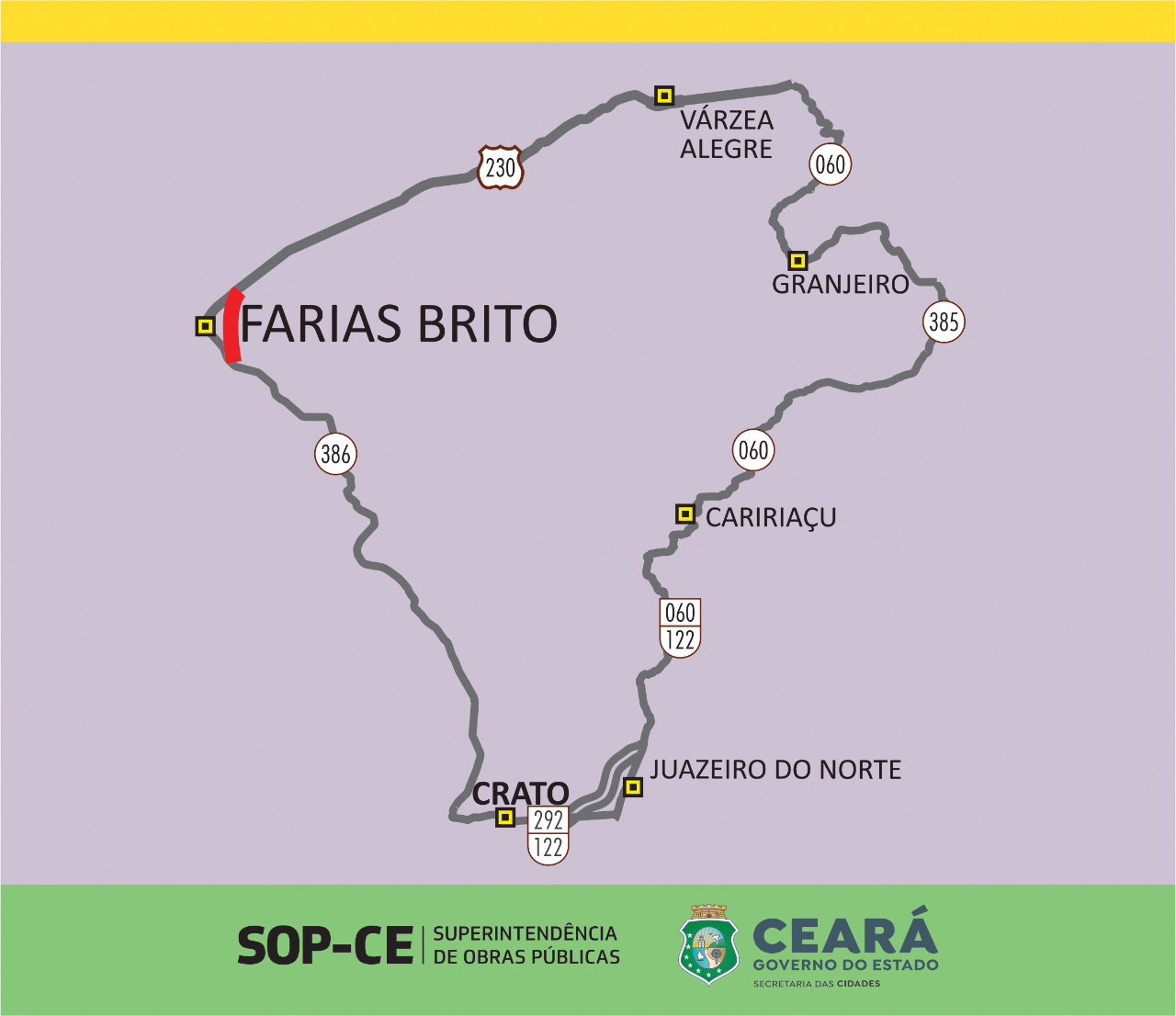 A intenção da obra é reduzir a quantidade de veículos pesados que passam por dentro da cidade de Farias Brito. “A obra vai beneficiar diretamente o município de Farias Brito, mas também vai facilitar o ir e vir, ao reduzir o tempo e o custo da viagem dos usuários que se destinam ao Cariri e dos que vêm daquela região com destino a Fortaleza”, destacou o gerente de Obras Rodoviárias da SOP, Quirino Ponte.