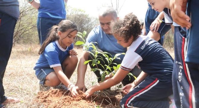 O Parque Ecológico das Timbaúbas de Juazeiro do Norte foi arborizado, nesta quinta-feira (21), com 10 árvores nativas e frutíferas, sendo elas de sapoti, oiti, ipê e juazeiro.