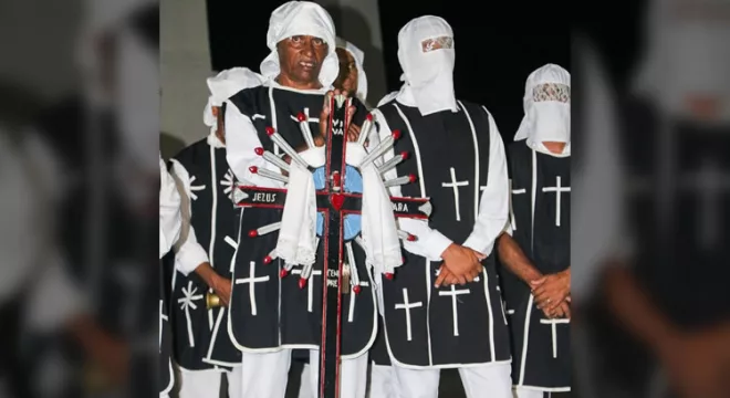 O badalar dos sinos e a tradicional indumentária, em preto e branco, anunciava a chegada dos grupos de Penitentes no Largo da Igreja do Rosário, em Barbalha. A tradicional procissão do fogaréu, ocorreu na quinta-feira santa, faz parte da tradição religiosa durante a Semana Santa.