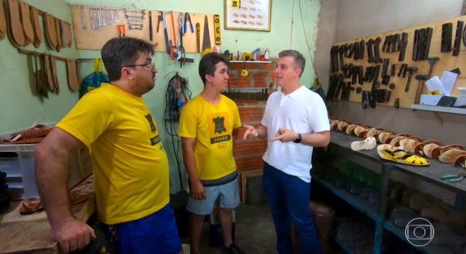 Huck visitou a fábrica dos irmãos, em Crato (Foto: TV Globo)