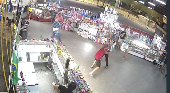 No vídeo, que tem ganhado repercussão nas redes sociais, é possível ver dois homens em briga corporal após uma discussão. Durante a confusão, os dois caem sobre um dos quiosques do espaço, derrubando as mercadorias. Algumas pessoas chegam no momento e conseguem contê-los.