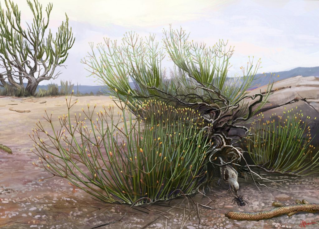 A descoberta da planta fóssil da família Ephedraceae, descreve informações sobre a evolução das plantas gimnospermas e seu alcance geográfico no passado distante.