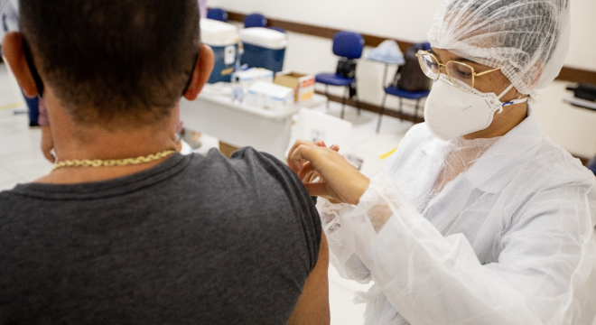 Pessoas de 35 a 44 anos são vacinadas contra Covid-19 em Juazeiro do Norte nesta quinta-feira, 29