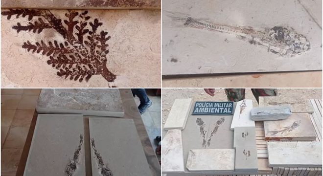A Polícia Militar do Meio Ambiente recuperou, nesta quarta-feira (27), 19 fósseis encontrados em pedreiras, em Santana do Cariri. A ação aconteceu durante uma fiscalização de combate à comercialização ilegal de fósseis. De acordo com a polícia, o material foi entregue de forma espontânea por trabalhadores das pedreiras, e por isso não se trata de uma apreensão.