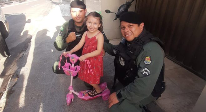 A equipe se sensibilizou com o pedido, organizou uma cota, e nesta quarta-feira (03), a Polícia Militar do Ceará (PMCE) visitou a família e para felicidade de Laryssa, o tão sonhado patinete foi entregue. No registro fotográfico é possível ver o quanto Laryssa está radiante com o presente.