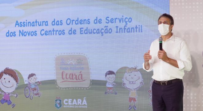 O governador do Ceará, Camilo Santana (PT), assinou na manhã desta sexta-feira (16) ordens de serviço para a construção de 19 novos Centros de Educação Infantil (CEIs) em 14 municípios do estado. A solenidade virtual contou com as presenças da primeira-dama Onélia Santana, da vice-governadora Izolda Cela e da secretária estadual de Proteção Proteção Social, Justiça, Cidadania, Mulheres e Direitos Humanos, Socorro França.