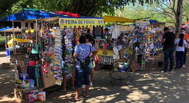Além de fogos de artifícios e outros produtos inflamáveis utilizados tradicionalmente no São João, como “chuvinha” e “traque de salão”, as barracas dispõem de produto de decoração e acessórios, como chapéu de palha.