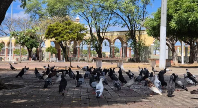 A proliferação de pombos na praça próxima ao Santuário de São Francisco das Chagas, no bairro Franciscanos, em Juazeiro do Norte, tem preocupado moradores e visitantes. Um vídeo registrado pelo Miséria nesta quarta-feira (6) mostra uma revoada no local.