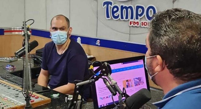 O médico Daniel Victor, filho do comunicador Normando Sóracles, durante apresentação do dominical (Arquivo Pessoal)