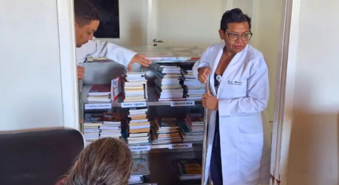 Entre leitos, corredores frios e a espera que parece alongar os dias, um sopro de leveza percorre os leitos do Hospital Regional do Cariri (HRC). Desde 2022, pacientes e acompanhantes têm encontrado refúgio em outras histórias, outros cenários e perspectivas que chegam sobre rodas: é a biblioteca itinerante ‘Leitura em Movimento’.