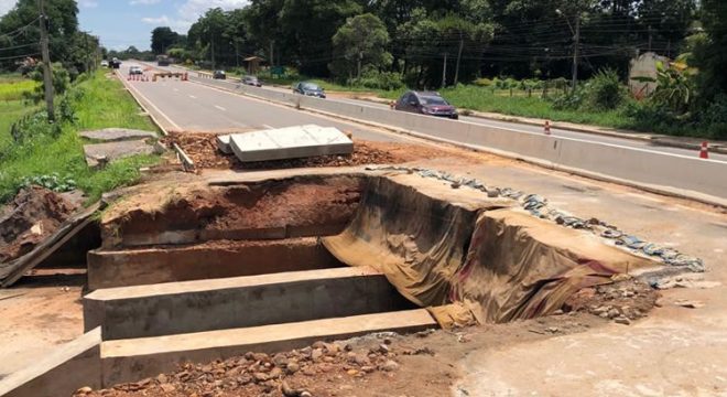 A rodovia interliga as cidades de Barbalha e Missão Velha. Os motoristas precisam realizar desvio no ponto em que a obra está ocorrendo.