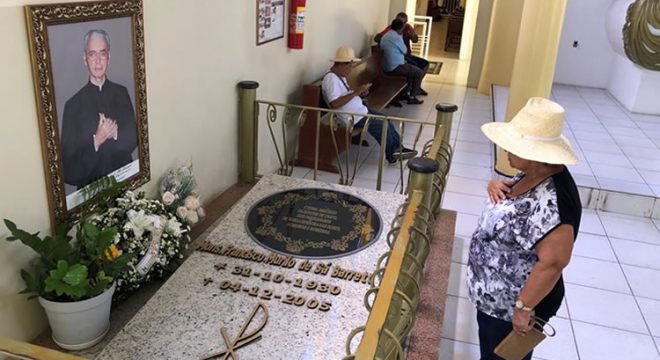 Fieis visitam túmulo do sacerdote na Basílica Menor de Nossa Senhora das Dores