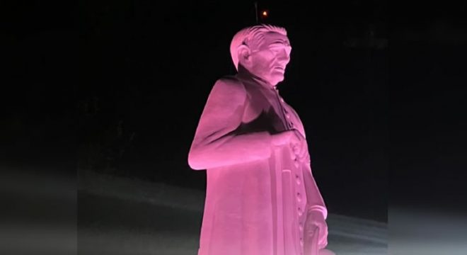 Em alusão ao Outubro Rosa, mês da conscientização para o diagnóstico e tratamento do câncer de mama, a estátua de Padre Cícero, localizada na Colina do Horto, em Juazeiro do Norte, ganha nova iluminação.
