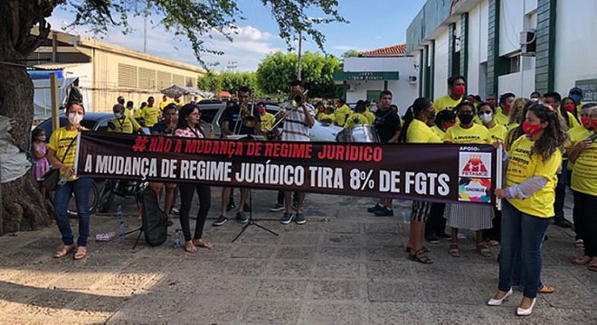 Manifestantes são contrários à mudança do regime de CLT para estatutária