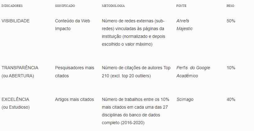 A metodologia empregada para constituir o Ranking Web Universities (RWU)
