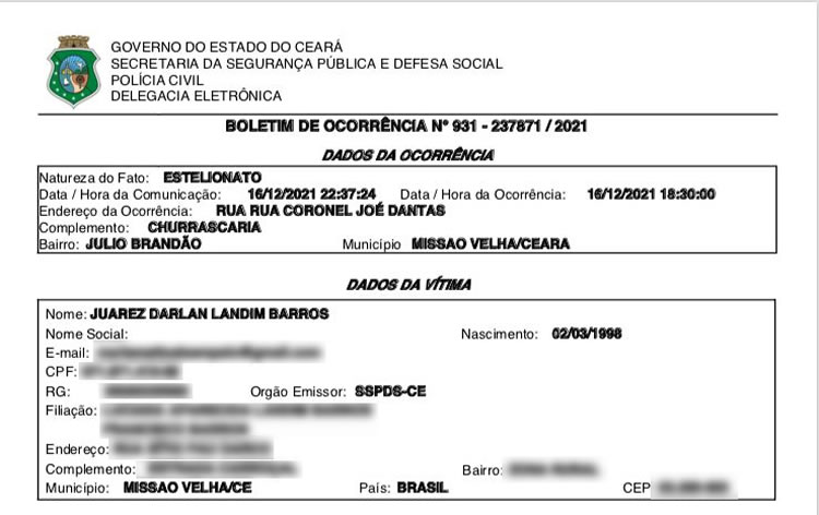 O Site Miséria teve acesso ao boletim de ocorrência, feito às 22h37 desta quinta-feira (16), onde é relatado que, na tarde do mesmo dia, Juarez recebeu uma mensagem do perfil @quedalivre_sorteio, onde haveria a afirmação de que era necessário cadastrar um telefone para participar de um sorteio e ganhar um final de semana no Hotel das Fontes, em Fortaleza.