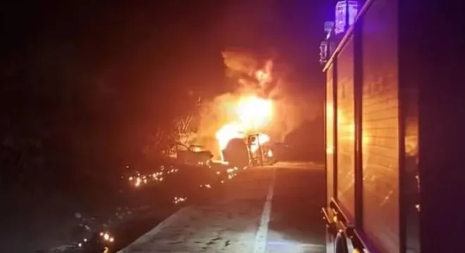 As imagens capturadas por condutores que passavam pela via mostram as chamas consumindo os veículos envolvidos no acidente, causando bloqueio na pista e congestionamento na região. Horas depois, o trecho foi liberado para o tráfego.