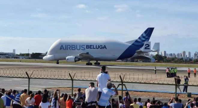 O avião cargueiro Airbus Beluga ST, conhecido como avião “baleia”, chegou em Fortaleza em seu primeiro pouso na América Latina. A aeronave pousou por volta das 15h25 deste domingo (24), no Aeroporto de Fortaleza.