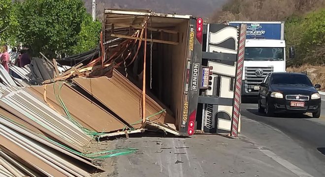 Ainda segundo a Polícia, o motorista do caminhão sofreu apenas ferimentos leves nos braços. O condutor foi encaminhado para uma unidade de saúde próxima, recebeu os primeiros socorros e, em seguida, foi liberado. A carreta ainda se encontra no local na manhã desta sexta-feira (25) e deve ser usado um guincho para desvirá-la.