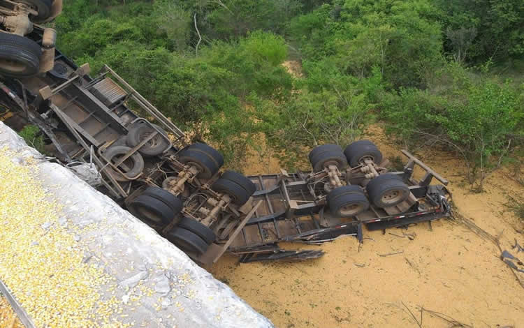 Segundo o major Deny Ricardo dos Santos, comandante do Batalhão de Polícia Rodoviária Estadual (BPRv), o condutor do veículo foi encaminhado por populares a um hospital da região. Ele disse ainda que o Corpo de Bombeiros foi acionado para verificar se a estrutura da ponte ficou comprometida com o peso do veículo, além de fazer a limpeza do óleo e do milho derramados na pista.