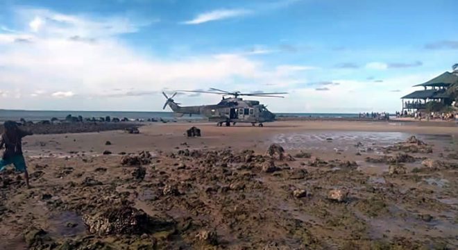Após ejetar e ser retirado da água, militar foi levado por helicóptero da FAB (Reprodução)