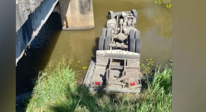 Um motorista sofreu ferimentos graves depois de um caminhão cair de uma ponte sobre o Rio Salgado, na BR-222, em São Gonçalo do Amarante, na Grande Fortaleza, na manhã desta quarta-feira (17).