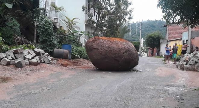 Uma pedra se soltou da encosta da Serra de Meruoca na tarde deste sábado (22), e chegou a rolar por cerca de seis metros em rua do Bairro Mãe do Divino. Ninguém ficou ferido.