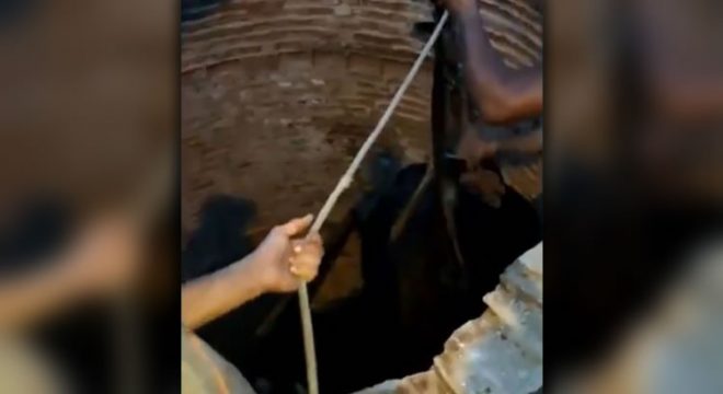 Vaca de meia tonelada cai em poço com 15 metros de profundidade em Iguatu