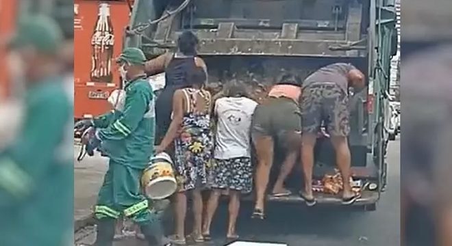 A imagem gravada pelo motorista de aplicativo André Queiroz foi compartilhada nas redes sociais no dia 17 de setembro. No vídeo, do dia 28 de setembro homens e mulheres coletam comida jogada fora por um comércio.