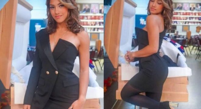 Jane Rivera foi criticada após postar fotos em frente ao caixão de seu pai em seu Instagram. (Foto: Reprodução/Instagram)