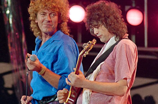 O guitarrista do Led Zeppelin, Jimmy Page, com o vocalista Robert Plant. (AP)