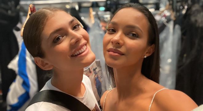 Valentina Sampaio e Lais Ribeiro no backstage do desfile (Reprodução)