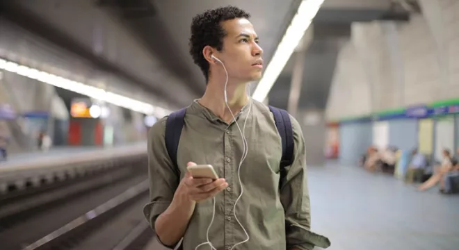 Antes de viajar sempre separe o seu fone, pois você vai precisar dele em um momento. Você pode escolher ouvir as músicas da sua banda favorita ou até mesmo procurar novas músicas que ainda não conhece e atualizar suas playlists.