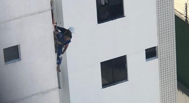 Dois operários ficaram pendurados no 4º andar de prédio na Rua Monsenhor Catão, no Bairro Aldeota, em Fortaleza, na manhã desta quarta-feira (20). Segundo um morador do local, um dos homens estava pintando a parte externa do prédio sendo segurado por cordas quando ficou sem sustentação. Um outro operário tentou resgatar o amigo e acabou ficando suspenso também.
