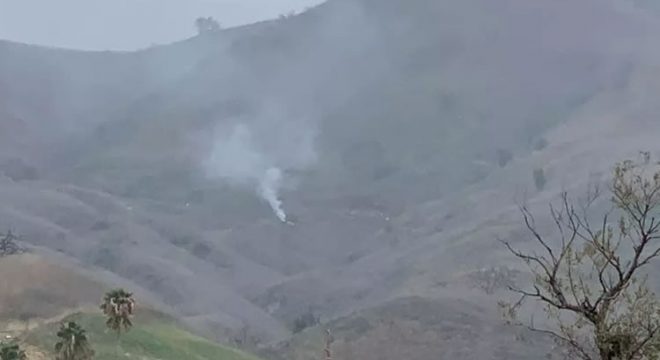 Fumaça em local de queda de helicóptero que matou ex-astro da NBA Kobe Bryant. - Foto: Reprodução/ Terra